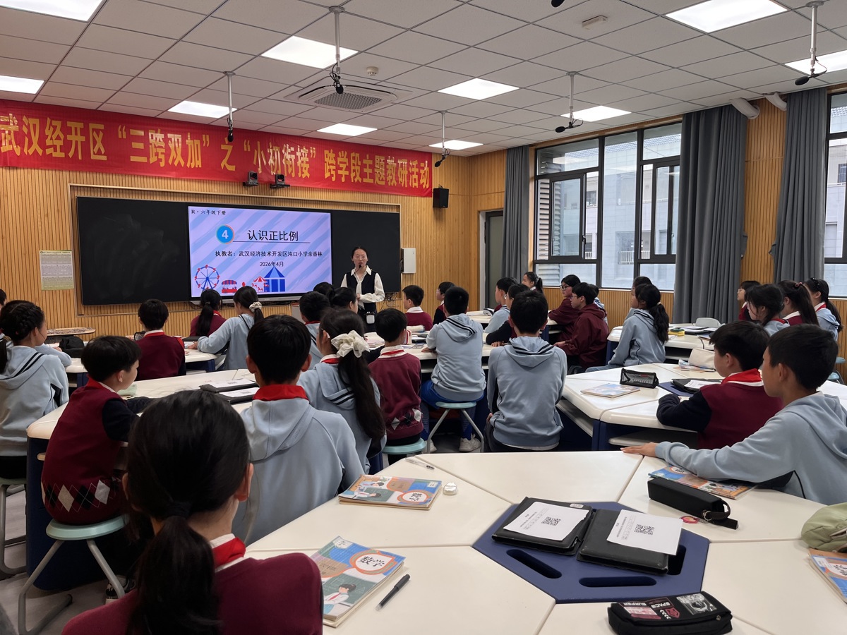 参观结束后,数学和英语两节体验课同步开讲。数学课上,沌口小学教师余香林以逻辑谜题和互动练习的方式,讲解了《认识正比例》的内容;英语课上,经开外校教师杨晶晶通过对话游戏和情景表演等方式组织教学。课后有学生感叹:“原来初中英语课也可以这样上。”两节体验课为现场教师提供了小初教学内容衔接的参考案例。