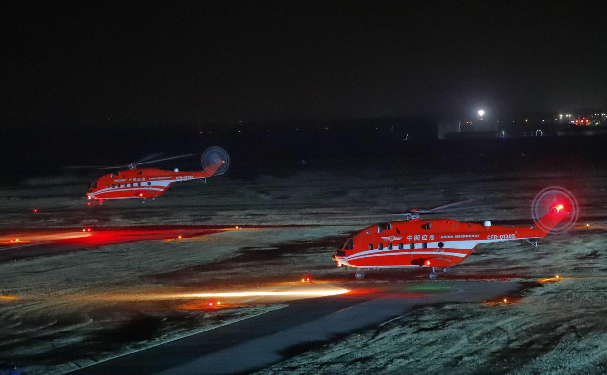 4月15日拍摄的国家消防救援局大庆航空救援支队跨昼夜救援演练现场。新华社发(闫安童摄)