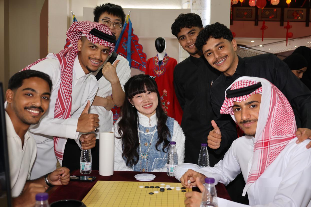 4月20日,在沙特阿拉伯吉达,当地学生在“国际中文日”庆祝活动上学习五子棋。新华社记者 王海洲 摄