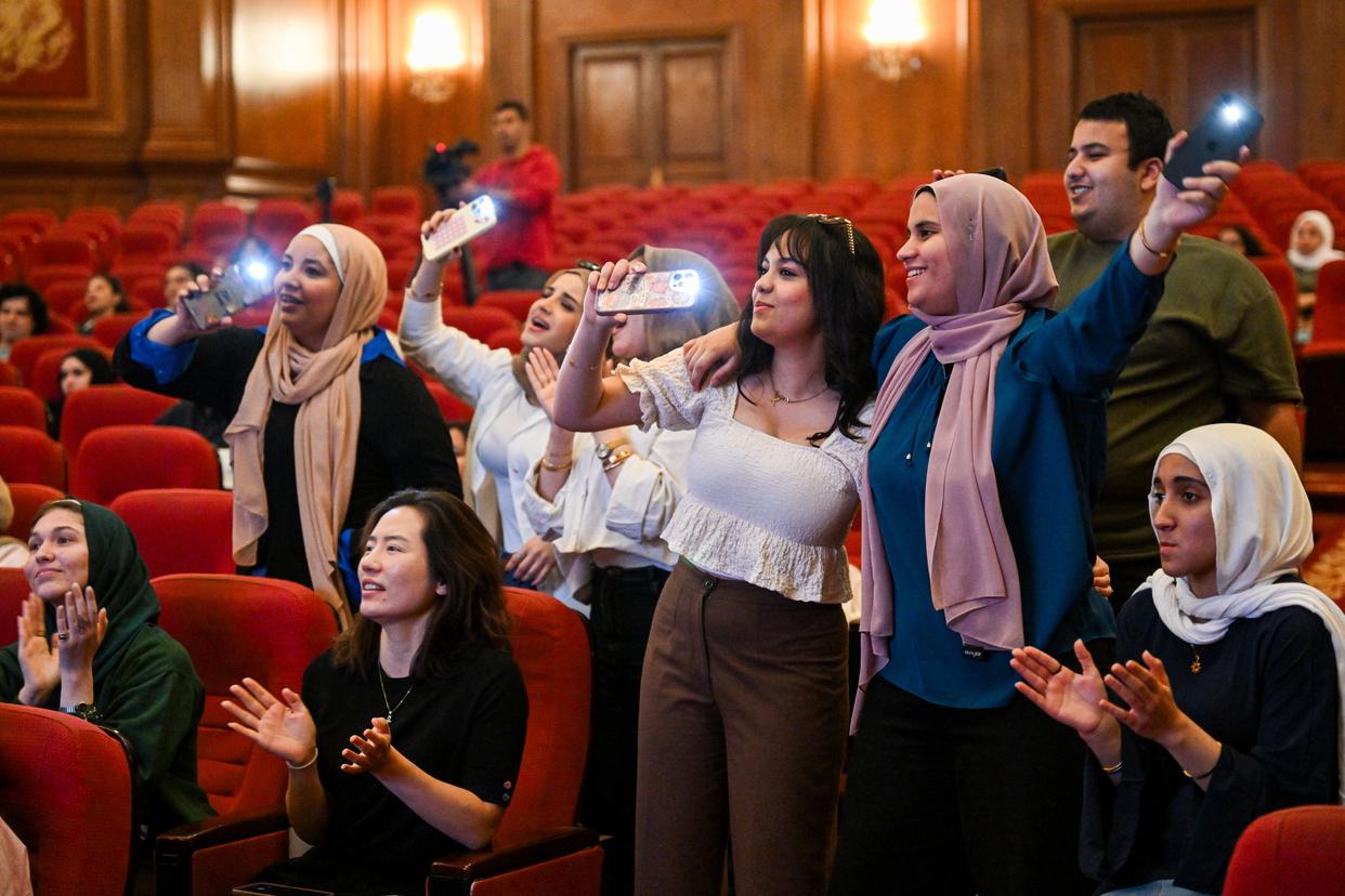 4月20日,在埃及首都开罗举办的“国际中文日”庆祝活动上,观众观看表演。新华社记者 辛梦晨 摄