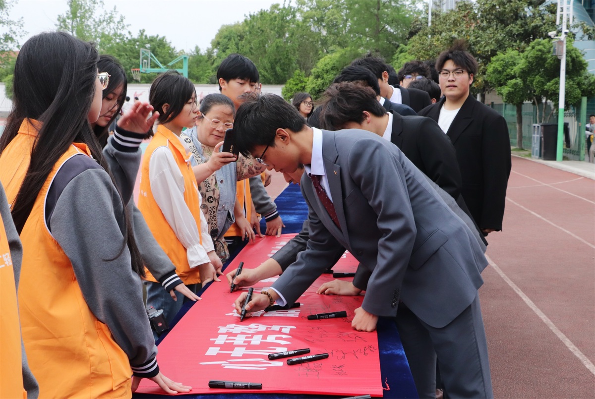 活动现场,青春的热血与成长的温情交织。学子们走过“成人门”,在励志横幅上签名留下青春印记;家长为孩子送上成人花束,一个拥抱、一句叮嘱,传递着最真挚的关爱。