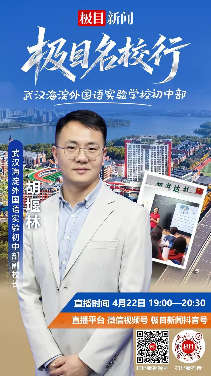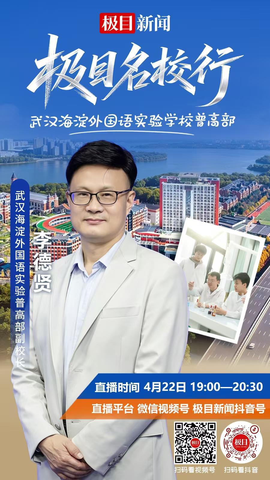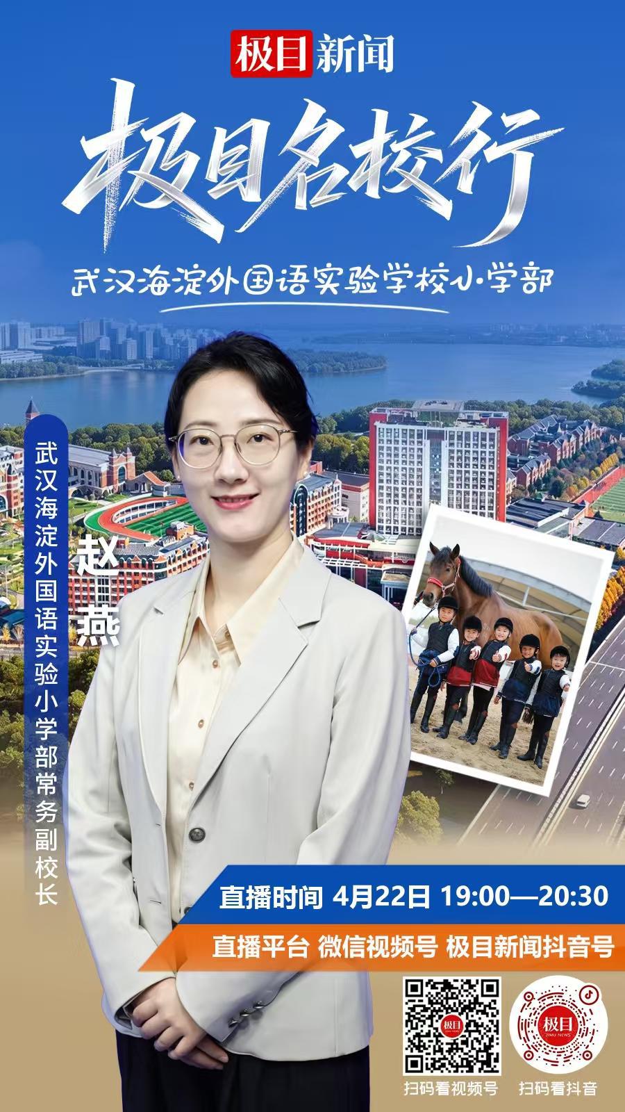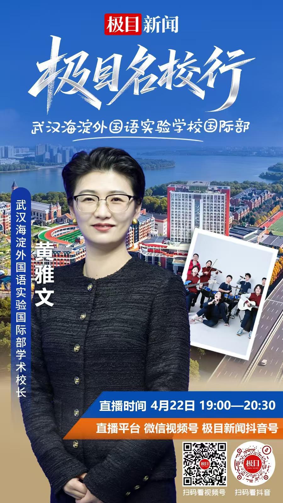 4月28日19:00-20:30,“名校行”打卡武汉海淀外国语实验学校,武汉海淀外国语实验学校幼儿园教学副园长蒋路、小学部常务副校长赵燕、初中部副校长胡堰林、普高部副校长李德贤、国际部学术校长黄雅文齐聚直播间,为大家全方位介绍这所集幼儿园、小学、初中、普通高中、国际高中于一体的高起点、高品位、国际化的优质民办双轨寄宿制学校。