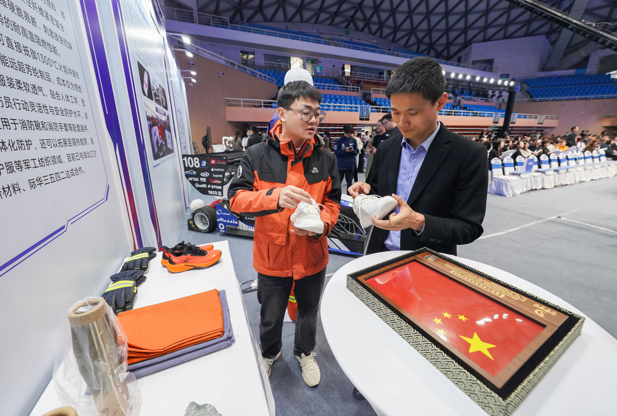 新材料领域,武汉纺织大学创造了两项“石头”传奇。“嫦娥六号月面国旗”是全球首面在月球背面独立动态展示的五星红旗,由玄武岩超细纤维织成,在±150℃极端环境下不褪色、不脆裂。同源技术转化的“玄武岩卷芯纱消防服”,可抵御1300℃火焰冲刷8秒,成本仅为传统芳纶材料的三分之一。