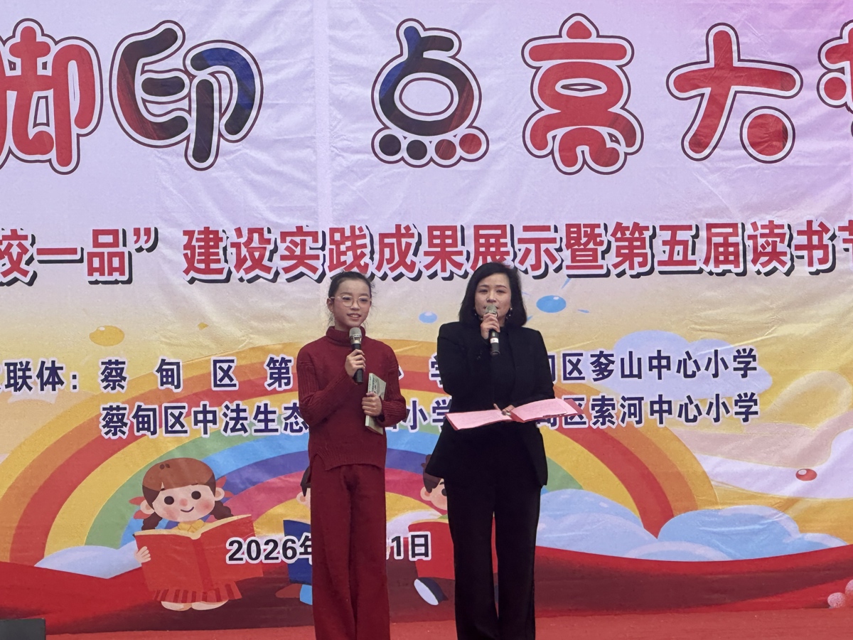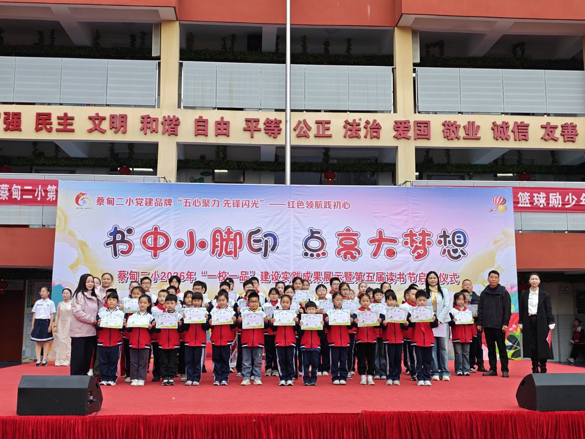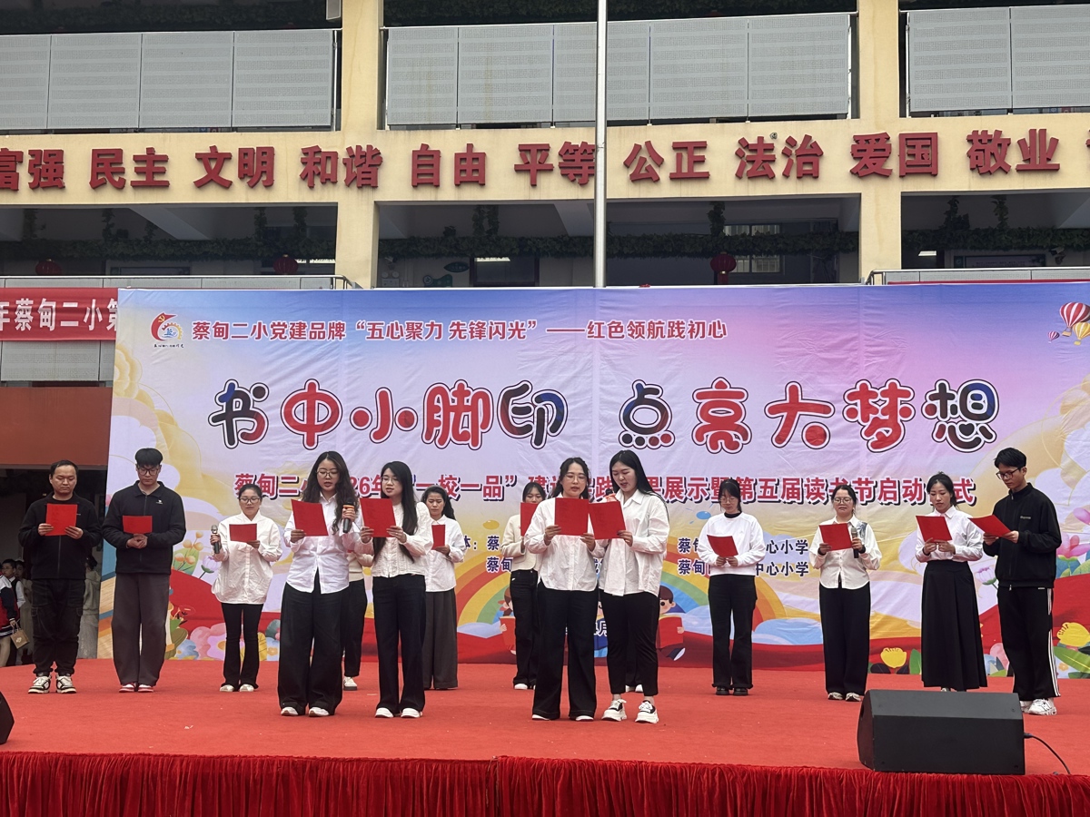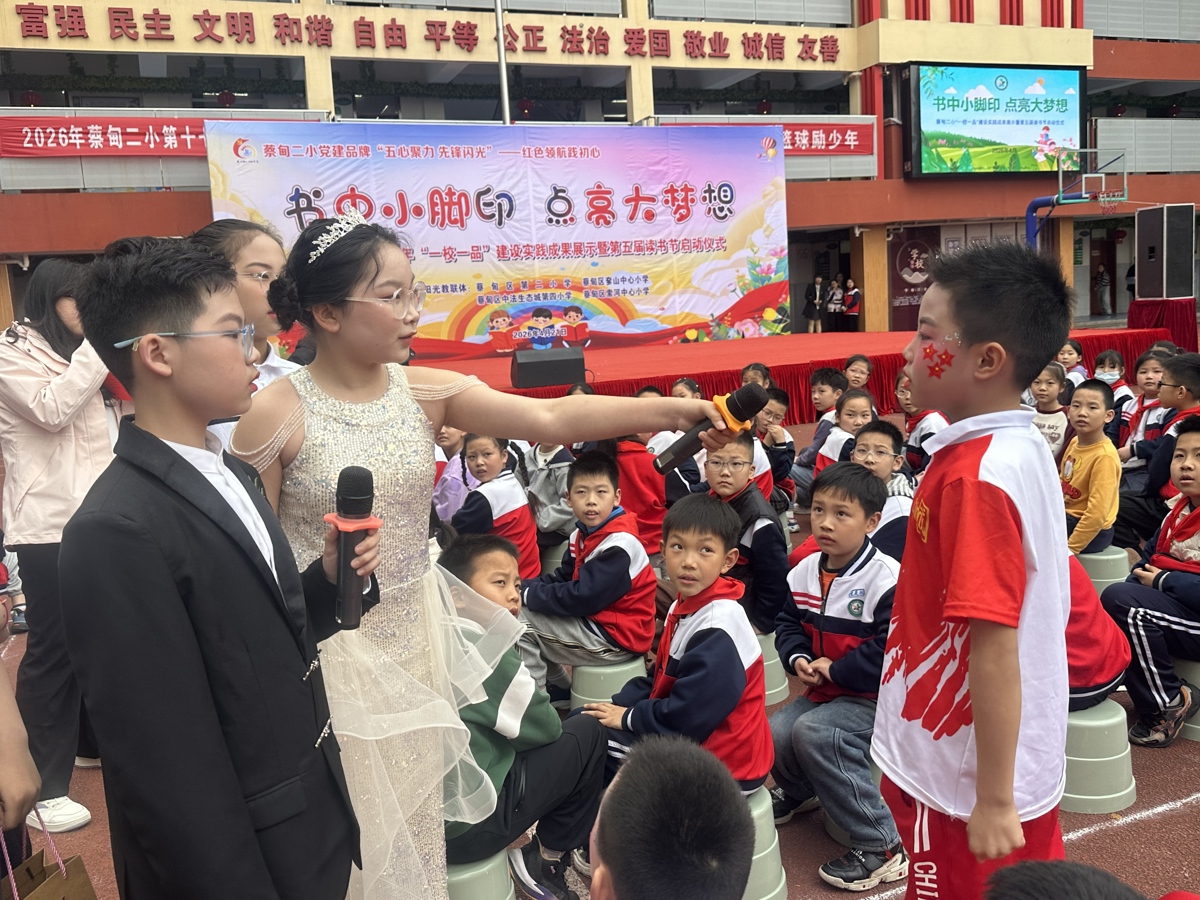 五二班叶静怡同学代表学生发出读书倡议:爱读书——每天坚持阅读30分钟,让读书成为习惯,让书香浸润童年;读好书——多读经典、历史、文学、科普,在文字里遇见更广阔的世界;善读书——边读边思、做好笔记、乐于分享,让阅读真正滋养心灵;共读书——与同学共读、与家人共读,让书香飘满校园、溢满家庭。