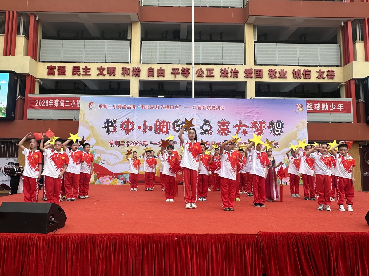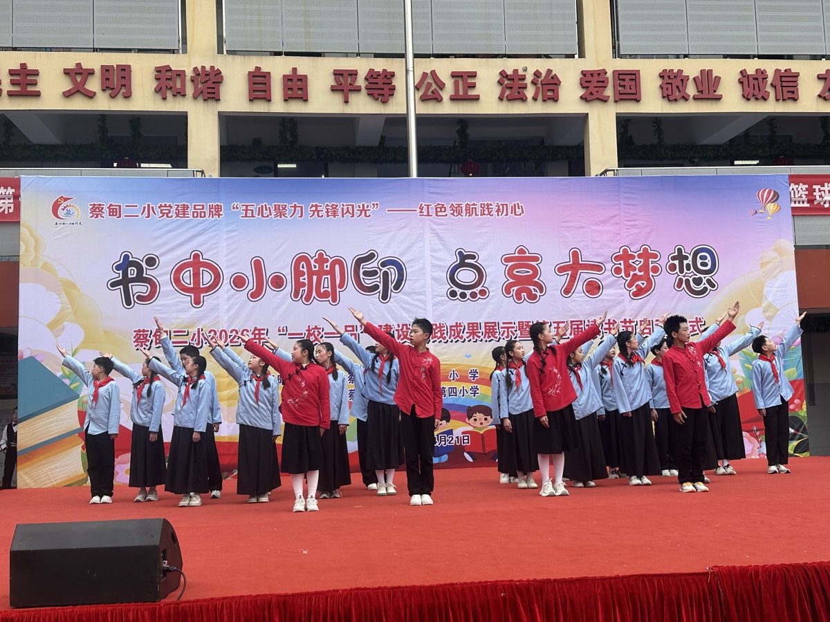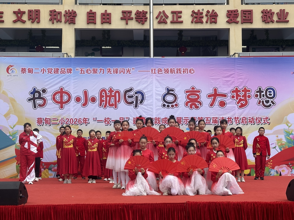 据了解,蔡甸二小始终以党建为帆、红色为舵,深耕“五心聚力 先锋闪光”育人品牌,让红色基因浸润校园。以书香筑底蕴,以经典润童心,通过经典诵读、读书盛会、家校共读等多元载体,构建全方位、多层次的阅读体系,让党建引领与红色教育同频共振。立足校情生情,打造“一校一品”特色名片,实现从常规育人到特色育人的跨越,开启“武韵承脉,少年凌锋”的武术操课程,绘就五育并举的育人新篇。红色铸魂、书香润心、武风励志,在蔡甸二小这片育人沃土上,声声成长皆成韵,步步少年尽向阳。