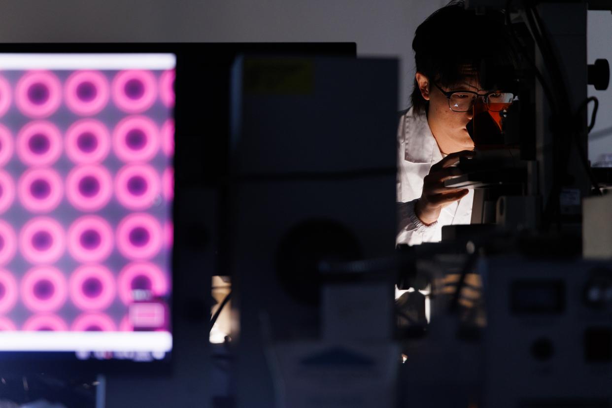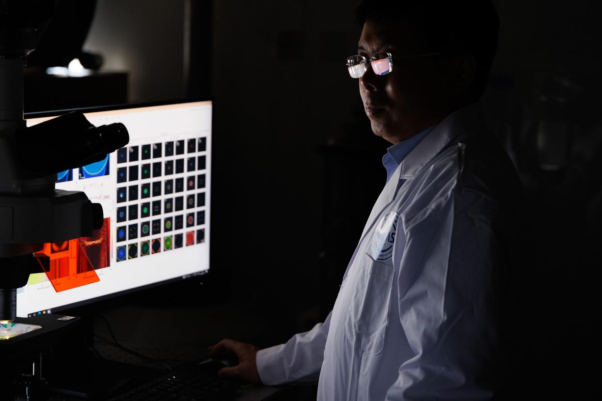 4月20日,宋延林研究员在中国科学院化学研究所实验室观察实验进展。新华社记者 金立旺 摄