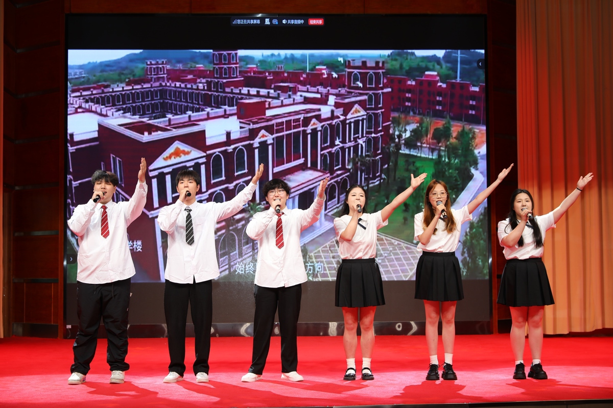 “强国一代有我在,奋进伟大新时代!”武昌校区会场,大学生艺术团齐声唱响《强国一代有我在》。从“肩扛使命荣光”到“搏击青春沙场”,歌声如火,誓言如铁,青年学子以书为帆、以梦为桨,在强国征途上意气风发,不负韶华。