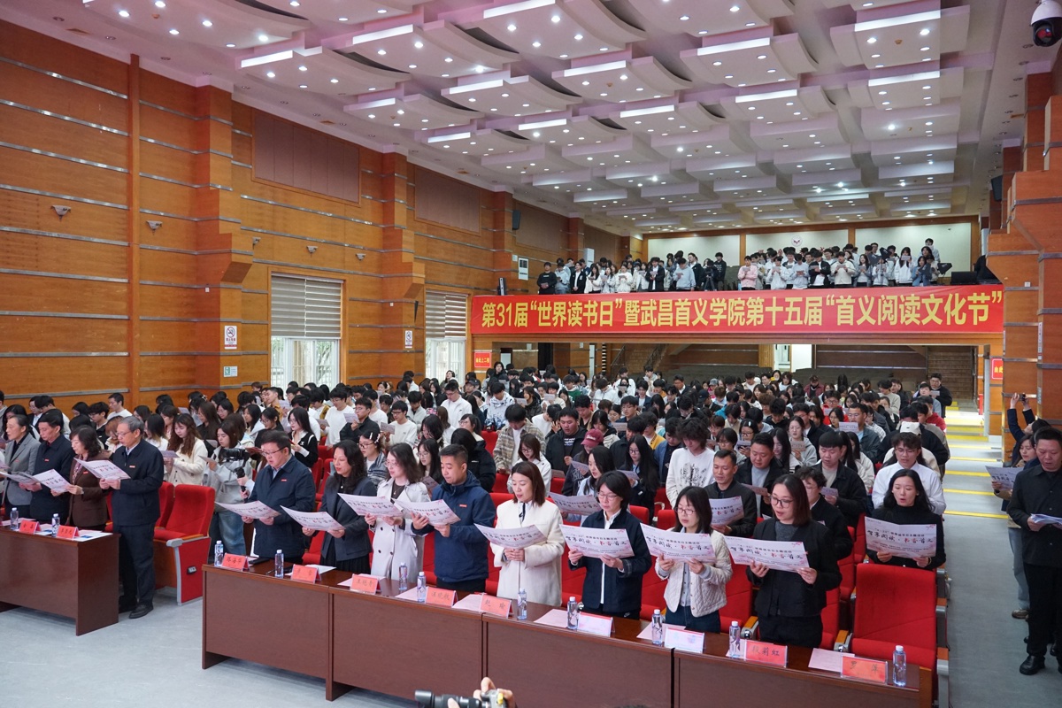 “有人问,哪里是你的家?我回答,向东方走,有个美丽的地方叫中华。”4月23日中午,武昌首义学院“阅启新程,书香首义——4·23世界读书日首义师生现场诵读活动”以线上联动方式在武昌校区、嘉鱼基地同时举行。1500余名师生同台齐诵《中华颂》节选,琅琅书声铿锵有力,拳拳深情激荡人心,浓浓的文化味与强国情在校园澎湃涌动。