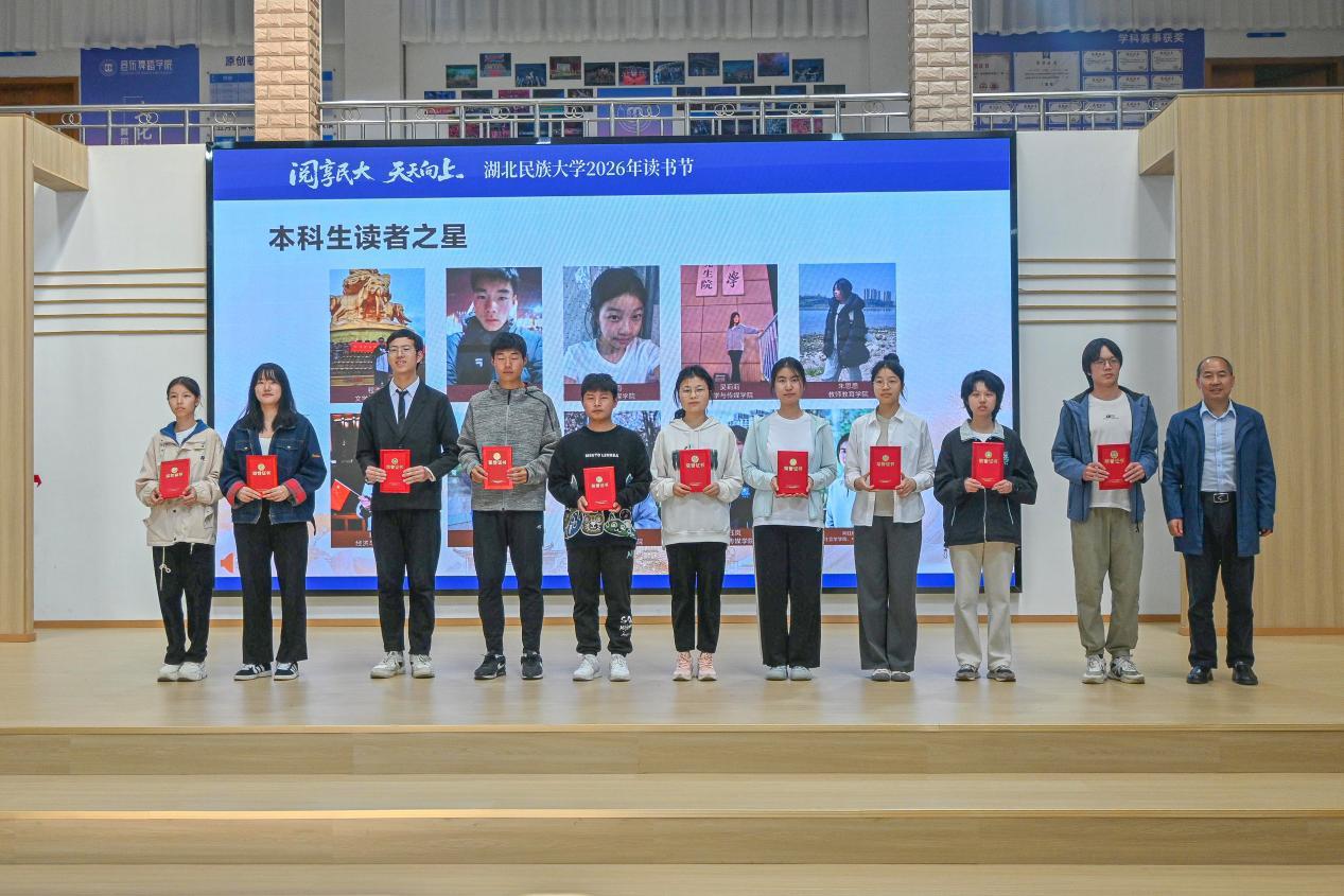 启动仪式上,湖北民族大学图书馆发布了《2025年阅读报告》,程振宁等10名同学获“本科生读者之星”称号,杨贝佳等10名研究生获“研究生读者之星”称号,文学与传媒学院、医学部、外国语学院、经济与管理学院、法学院获评“书香学院”。学校图书馆还与恩施州图书馆签署合作协议,全面贯彻《全民阅读促进条例》,实现资源共享、优势互补,共同推动恩施州全民阅读事业。