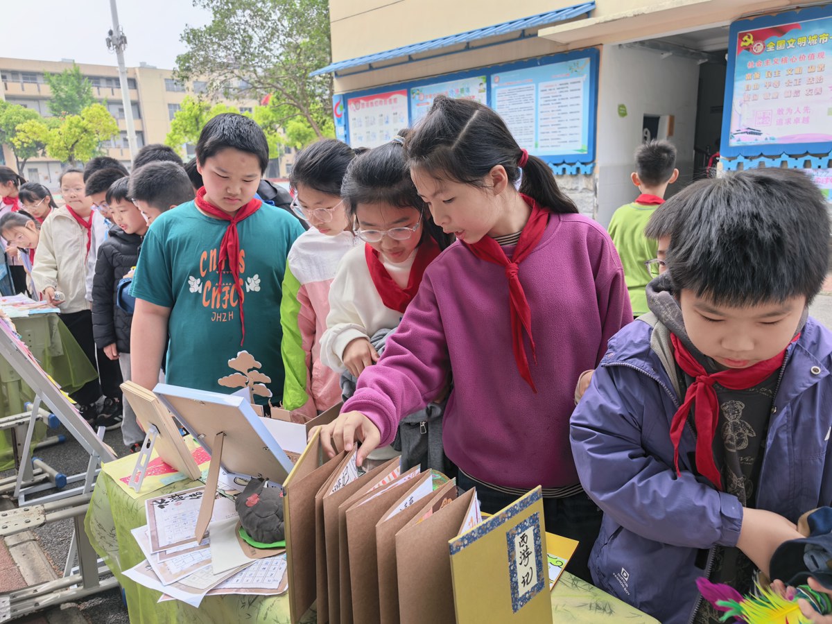 “快看!这是我做的‘三打白骨精’立体书,翻开来就能看到孙悟空挥舞金箍棒的样子!”4月24日,武汉市青山区钢花小学“书香润童心 阅读伴成长”校园读书节活动火热进行中,五年级“品读经典名著 润泽书香童年”四大名著主题展圆满落幕。这场为期两天的特色文化展自4月23日世界读书日当天启幕以来,吸引了全校千余名师生驻足参观,百余件由学生亲手创作的创意作品集中亮相,师生们在沉浸式体验中品读经典名著,感受中华优秀传统文化的独特魅力,为校园读书节增添了浓墨重彩的一笔。