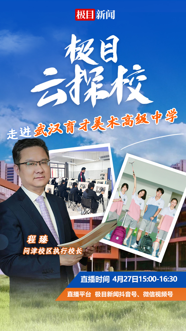 4月27日(下周一)15:00时,“名校行”节目邀请到武汉育才美术高中问津校区执行校长程臻校长,带领广大网友们一起逛校园。网友们可以锁定新闻微信视频号和抖音号实时收看。