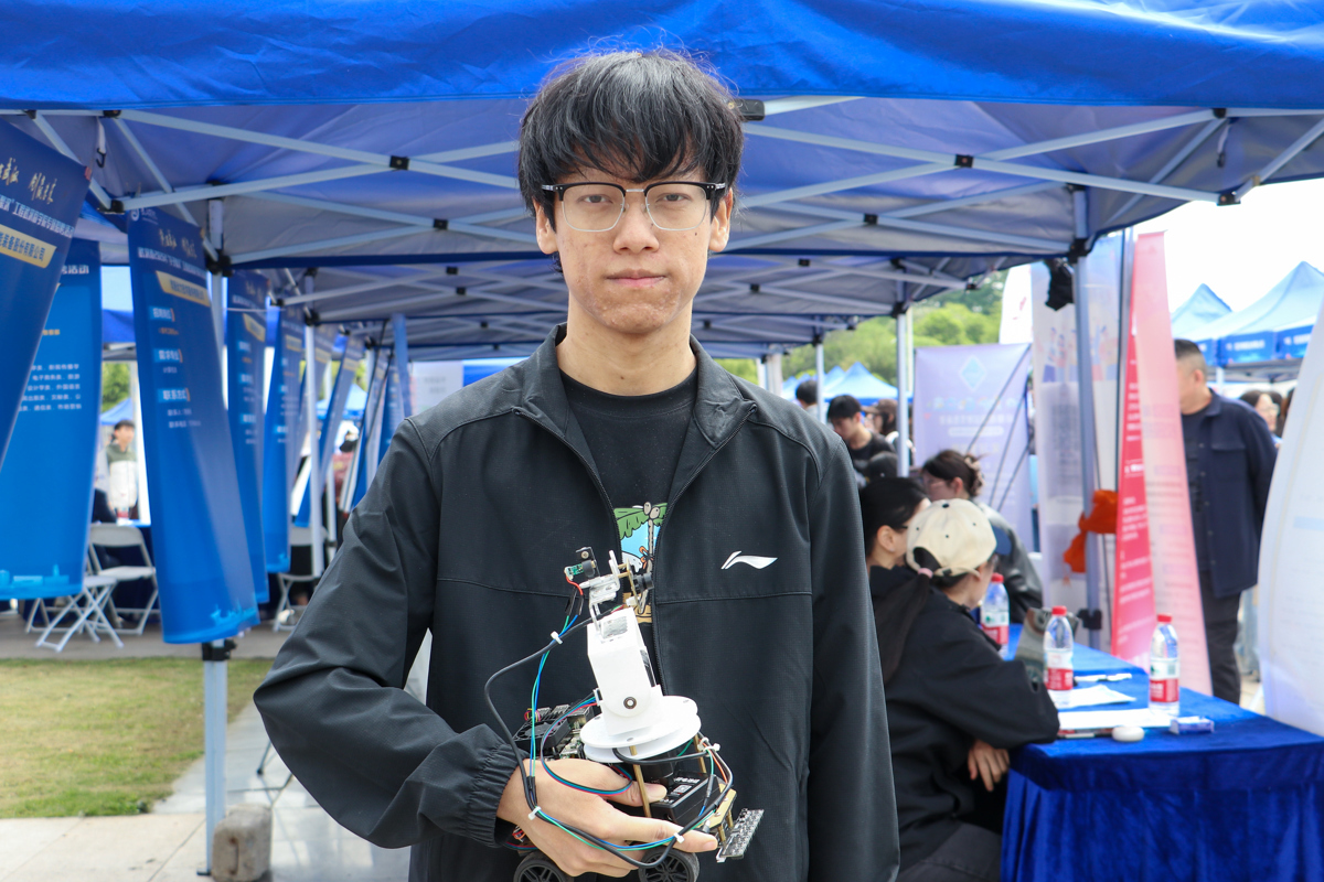 同专业的陈小宝则带来了简易动态目标跟踪装置。该装置从去年7月开始研发,最初用于参加全国电子设计大赛。临近比赛时调试未达标,他没有放弃,经过三次硬件迭代,最终升级为基于OpenCV的成熟方案,可在寻迹过程中通过摄像头精准识别并追踪目标,同时控制激光对准靶心。“这个作品体现了我对硬件性能的持续优化能力。”陈小宝说。早在去年秋季招聘会上,他就主动与企业沟通,明确了岗位所需技能,并在单片机技术、硬件调试等方面进行了针对性训练。