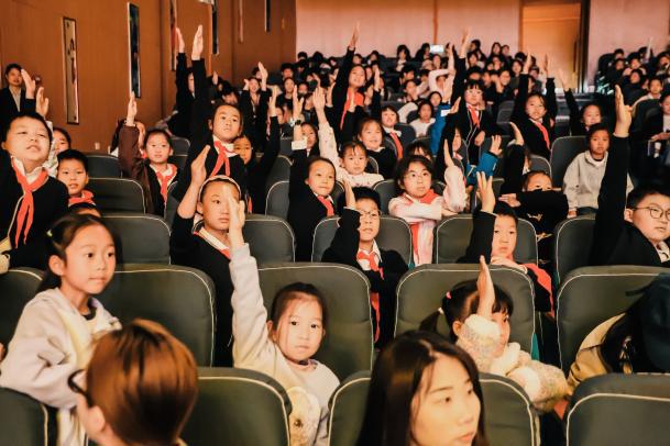 迈向当代传承,舞蹈《惊蛰》以现代艺术语言,诠释诗词文化跨越千年的滋养与生生不息的传承精神。诗词小课堂点明文脉延续的内核——从古至今,诗心未改。活动最后,全场齐诵《少年中国说》,铿锵誓言响彻剧场,孩子们在集体诵读中成为文化传承的主角。