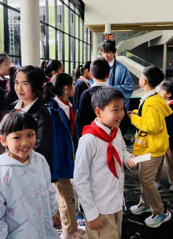 走进剧场前,“诗人”已在门口相迎。 “李白”“杜甫”“李清照”等诗人形象惊喜亮相,与孩子们对诗合影,让书本里的诗词变成触手可及的鲜活记忆。这场诗意偶遇,为整场活动拉开了温暖的序幕。