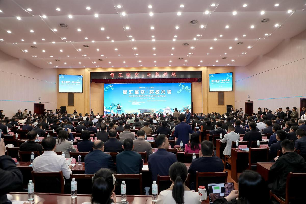 4月25日,2026年华中师范大学“校友回归”大会在武汉市黄陂区会议中心举行。大会以“智汇临空·环校兴城”为主题,300余名华中师大校友企业家、知名企业家,政府代表及师生校友齐聚武汉市黄陂区,共叙情谊、共谋发展,助力武汉教育科技融合与环大学创新发展带建设。