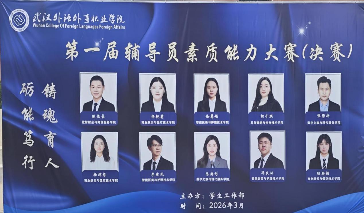 为全面提升辅导员队伍专业素养与育人能力,推动队伍专业化、职业化发展,武汉外语外事职业学院日前举行了首届辅导员素质能力大赛历经初赛笔试与决赛现场比拼。