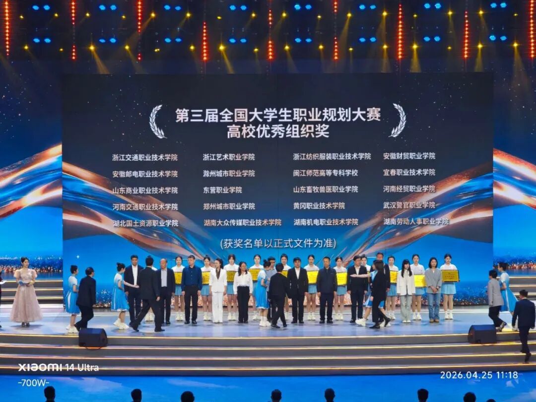 在此前省赛阶段,该校已获湖北省优秀组织奖,学生组斩获3金3银、教师组获1铜,其中学生就业赛道包揽全省第一、第二名。省赛中,学校奖牌总数与金牌数同样位居全省首位,充分彰显了学校在职业规划教育领域的整体实力。