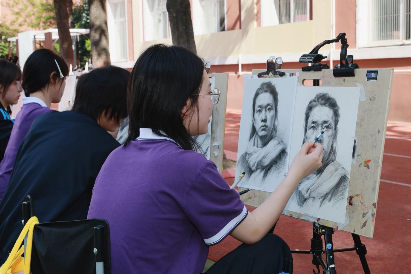 艺术升学咨询区同样人气十足,成为现场一大亮点。音乐展区内,学子轮番登台,弹琴歌唱、翩然起舞,悠扬乐声萦绕校园;美术展区中,美术特长生现场提笔素描,落笔沉稳、笔触细腻,扎实的专业功底引得不少家长、学生驻足观赏、交流咨询。