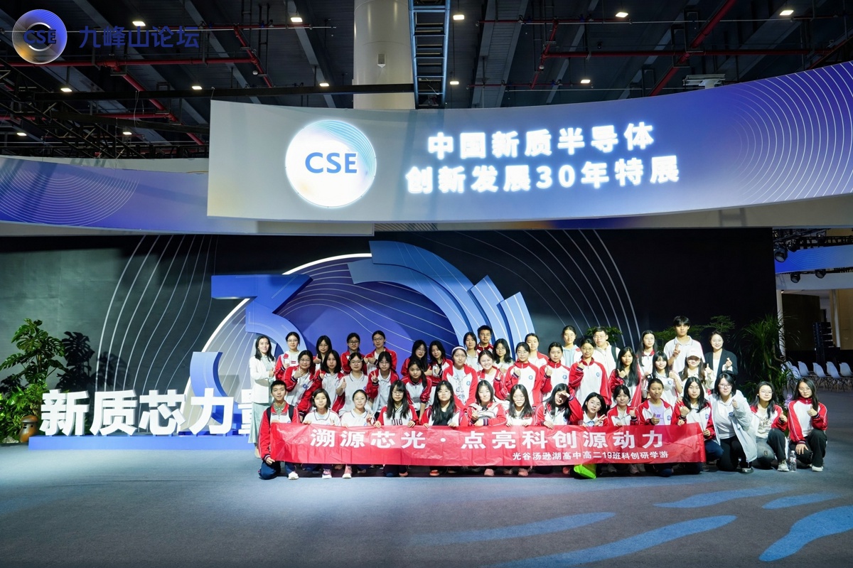 零距离打卡顶尖科研平台,解锁前沿黑科技,沉浸式感受硬核科技的超强魅力。2026年4月25日,武汉市光谷汤逊湖高级中学高二(19)班学生走进九峰山实验室,开启“溯源芯光·点亮科创原动力”沉浸式研学之旅。