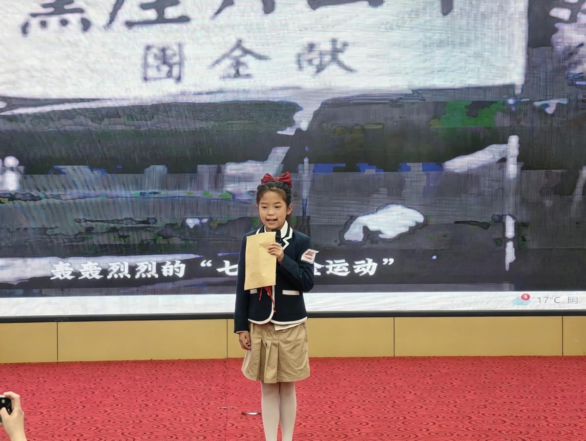 最令人动容的一幕出现在三年级13班谭紫涵登台时。她小心翼翼地展开一张泛黄信纸的复印件,轻声念叨:“亲爱的为我们在前线拼命的爸爸们,虽然我年纪小,杀鬼子的心却同你们一样……”现场瞬间安静下来。
