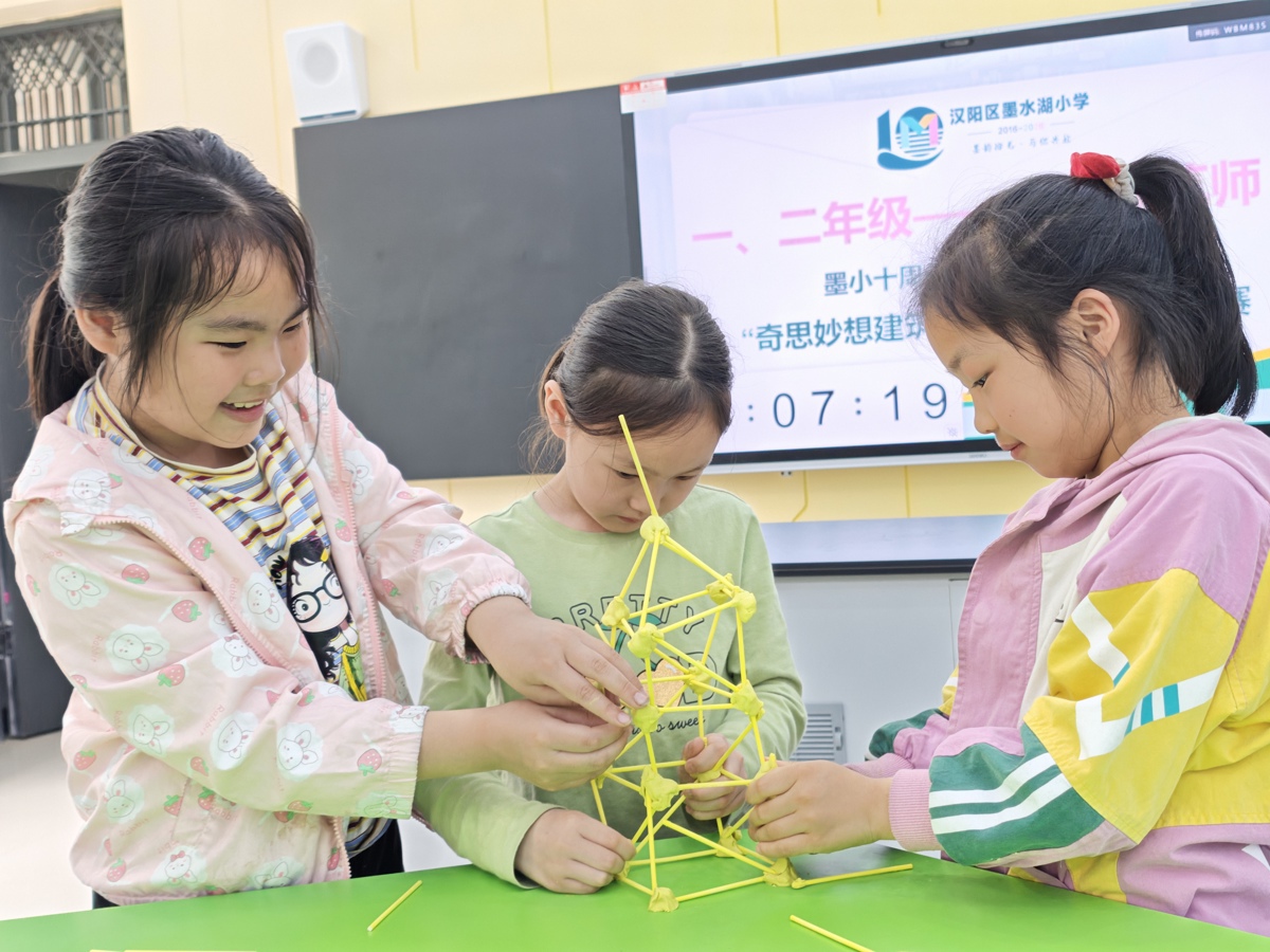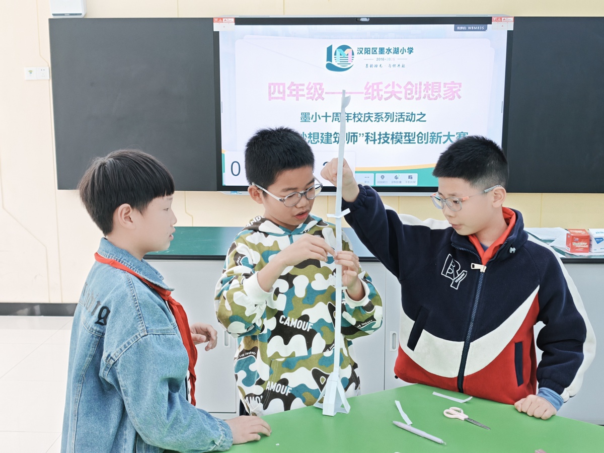 巧手筑塔搭桥,科创点亮童心!近日,武汉市汉阳区墨水湖小学“未来创想家”科创节重头戏——“奇思妙想建筑师”科技模型创新大赛圆满落幕。全校学子全员联动比拼动手能力,在趣味搭建中解锁工程知识,在协作攻关中涵养科学思维,用一件件创意科创作品,为校园十年校庆添彩赋能。
