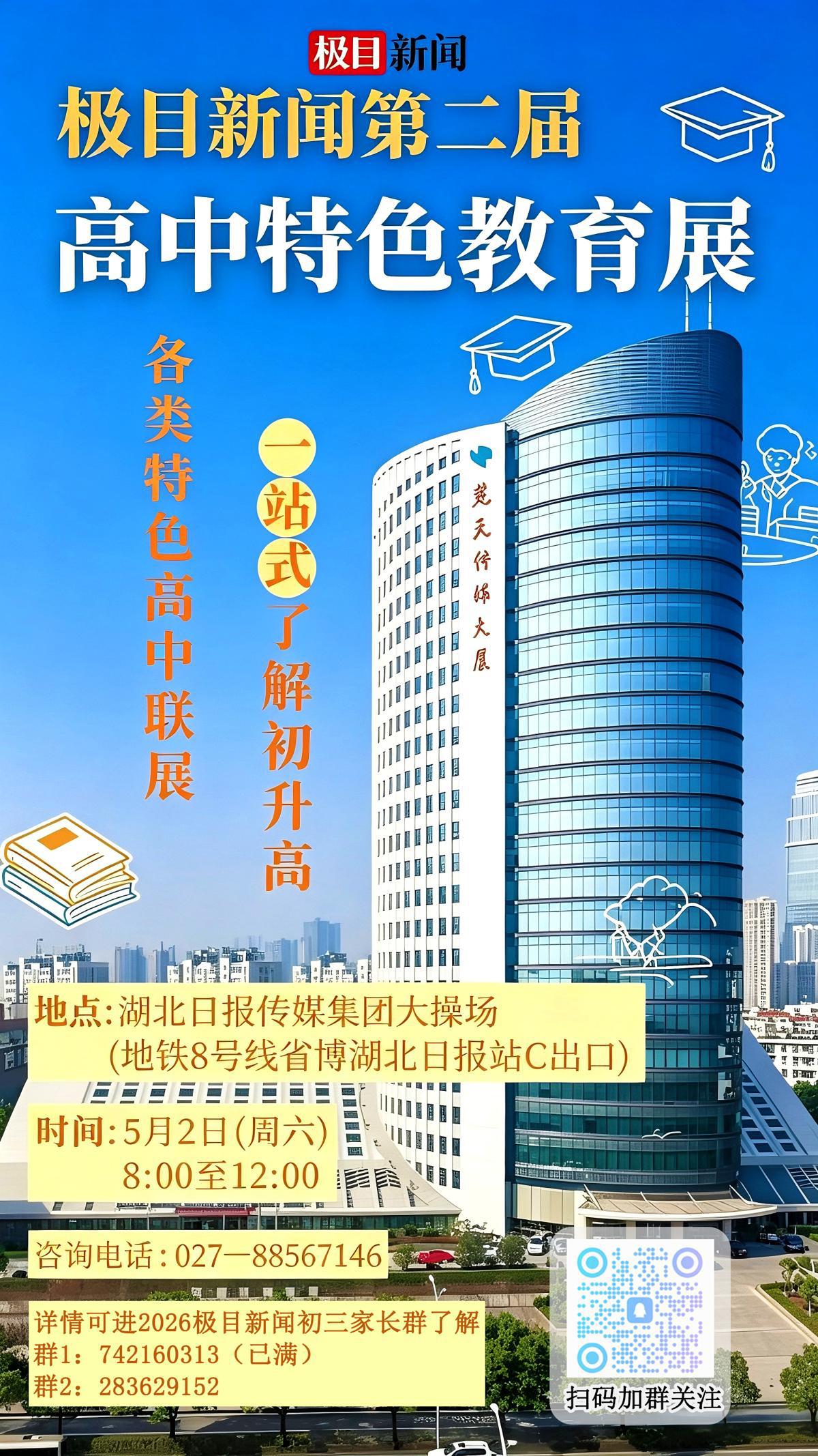 为精准服务广大考生与家长,全方位展示各高中办学理念、办学特色与育人成果,楚天都市报・新闻将于2026年5月2日上午8:00—12:00,于湖北日报传媒集团大操场,举办第二届高中特色教育展。活动全程面向广大考生及家长免费开放。