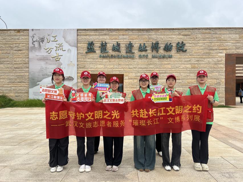 从青铜器前的耐心解说,到互动区的贴心指引,8名志愿者用行动诠释着武汉文旅志愿者的担当。他们不仅是展览的“服务者”,更是长江文明的“传播者”;他们以真诚服务传递城市温度,让每一位观展者感受到武汉对文化的珍视与对宾客的诚意。