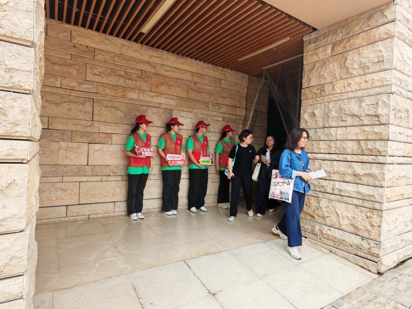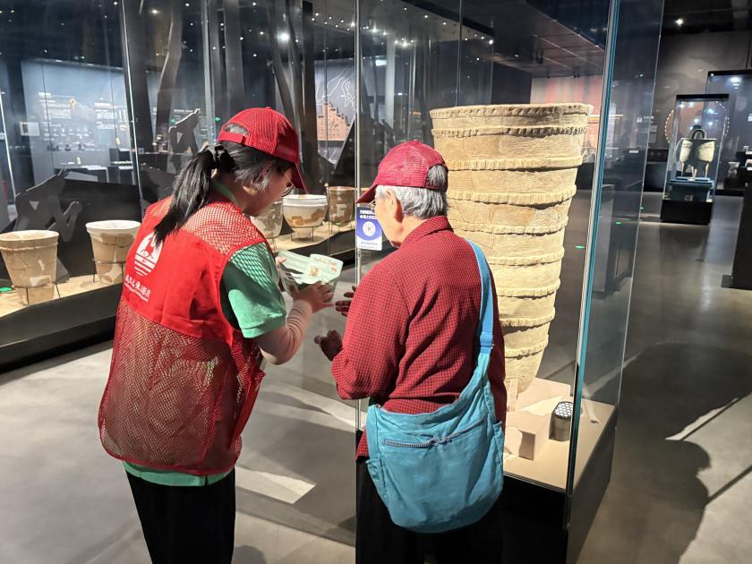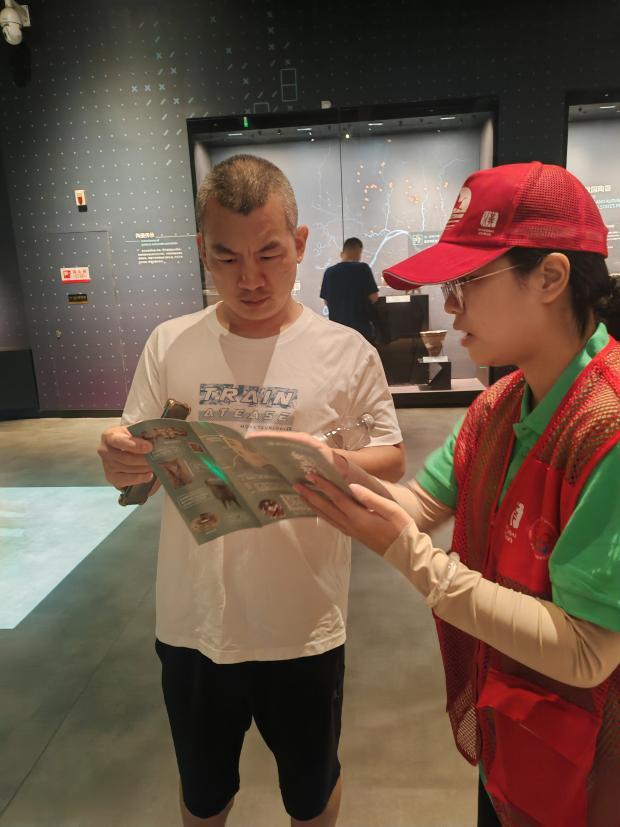 为保障特展高质量运行,志愿者提前到现场踩点,熟悉展厅布局、游客参观路径,还针对不同年龄段观众的咨询需求做了预案。开展当日,他们分散在入口引导、展品讲解等岗位。面对游客关于文物年代、展览主题的疑问,总能以清晰的解答传递长江文明的厚重;遇到老人或带孩子的游客,他们会热情地提供“一对一”服务。