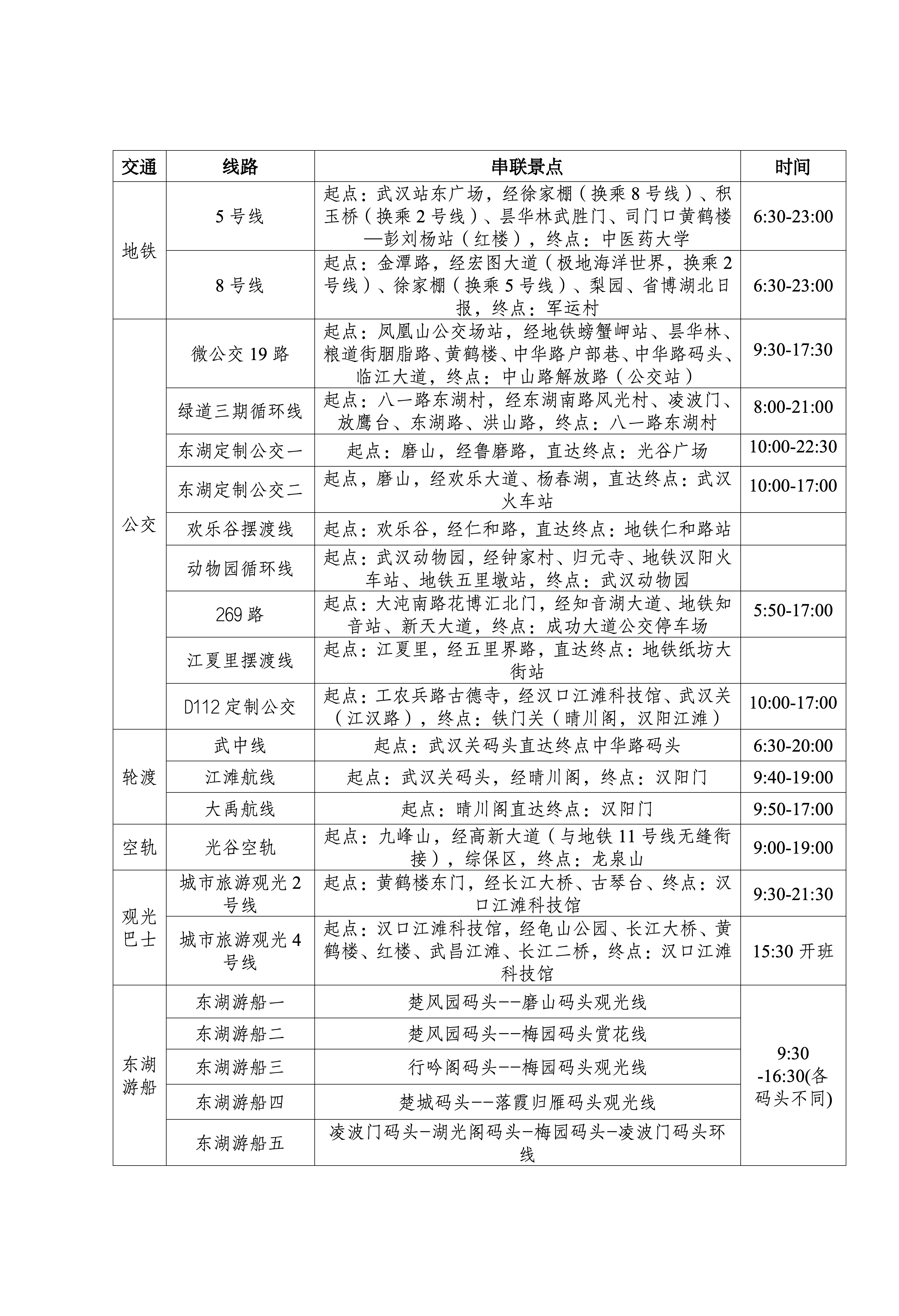 1.两条城市旅游观光专线,串联起汉口江滩、古琴台、长江大桥、黄鹤楼等武汉标志性景点。