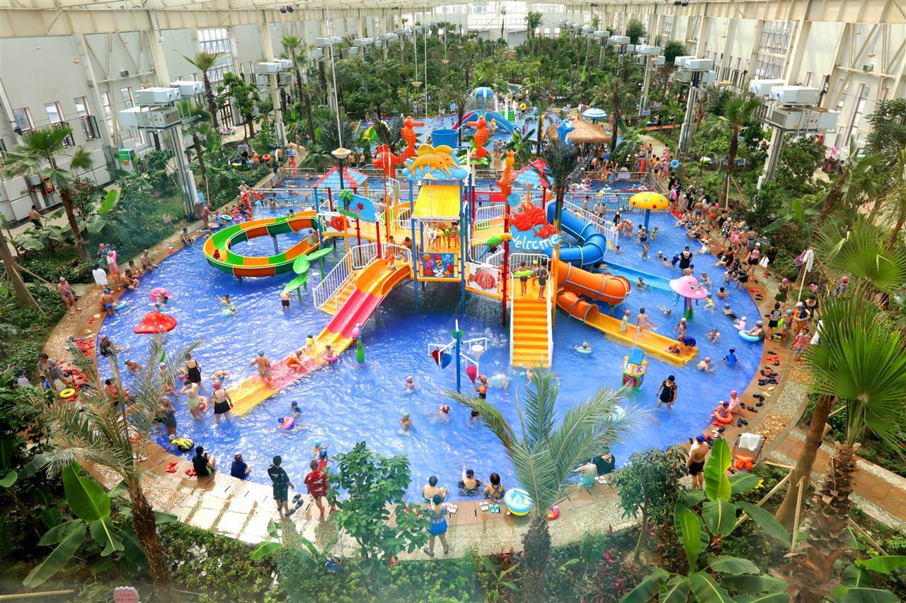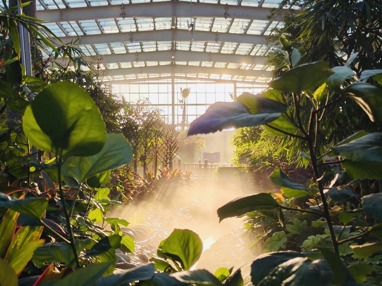 走进双河古道温泉康养中心的巨型温室,热带植物王国瞬间包裹每一位来访者。温泉泳池、儿童水寨、功能泡池一应俱全,游客既能泡汤放松,又能拍照打卡。