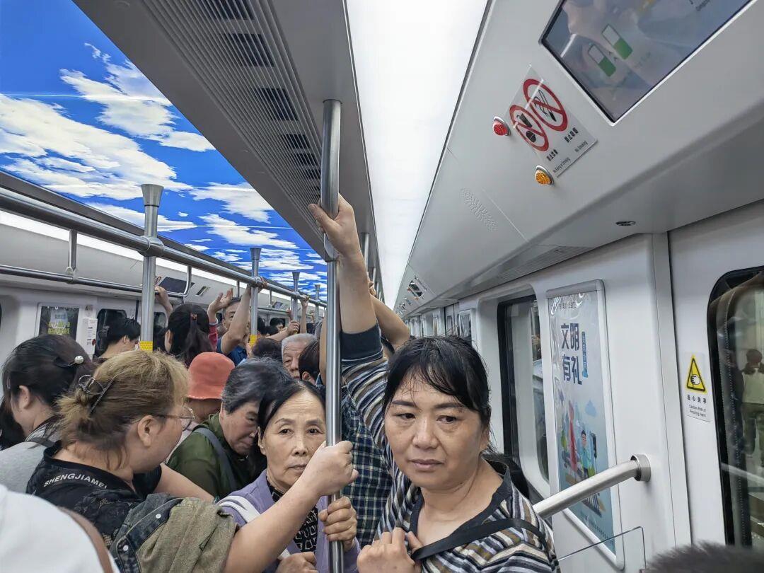 地铁11号线中有市民从古田、南湖、广埠屯等地赶来。从古田过来的一位吴女士说,早上六点就起来了,“烟花还经常可以看到,花车巡游难得一见。”11号线行至关山大道时,已经挤不上去人了。