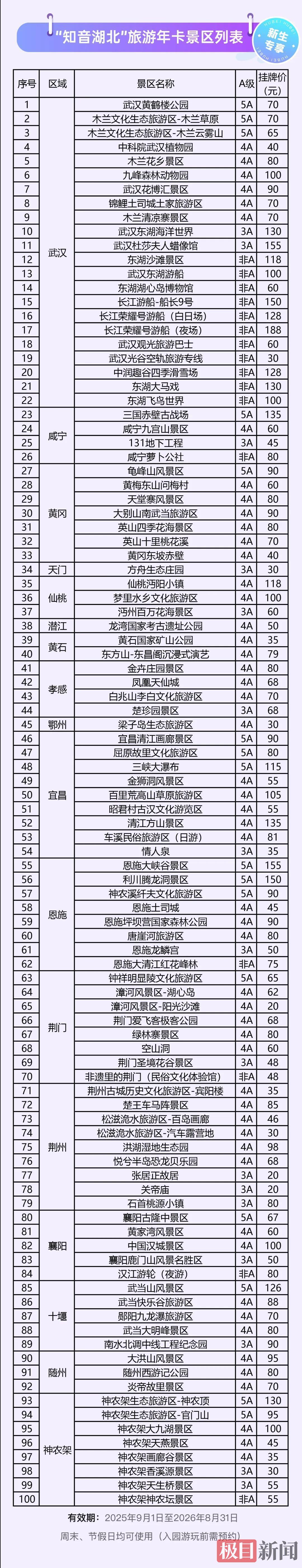 据悉,“知音湖北”旅游年卡是湖北省委、省政府为深入建设青年友好型省份,营造一流人才成长环境,专门为2025级高校新生送上的“见面礼”,旨在成为新生认识湖北、融入湖北的第一张通行证,助力他们在大学时光里感受荆山楚水的独特魅力。此前,该年卡领用通道于9月1日正式开启,但“游湖北”平台关注到,由于各高校开学时间存在差异,部分新生尚未完成注册,且“十一”黄金周出游高峰即将到来,为让更多新生能在假期便捷使用年卡畅游湖北,经研究后决定延长领用时间。