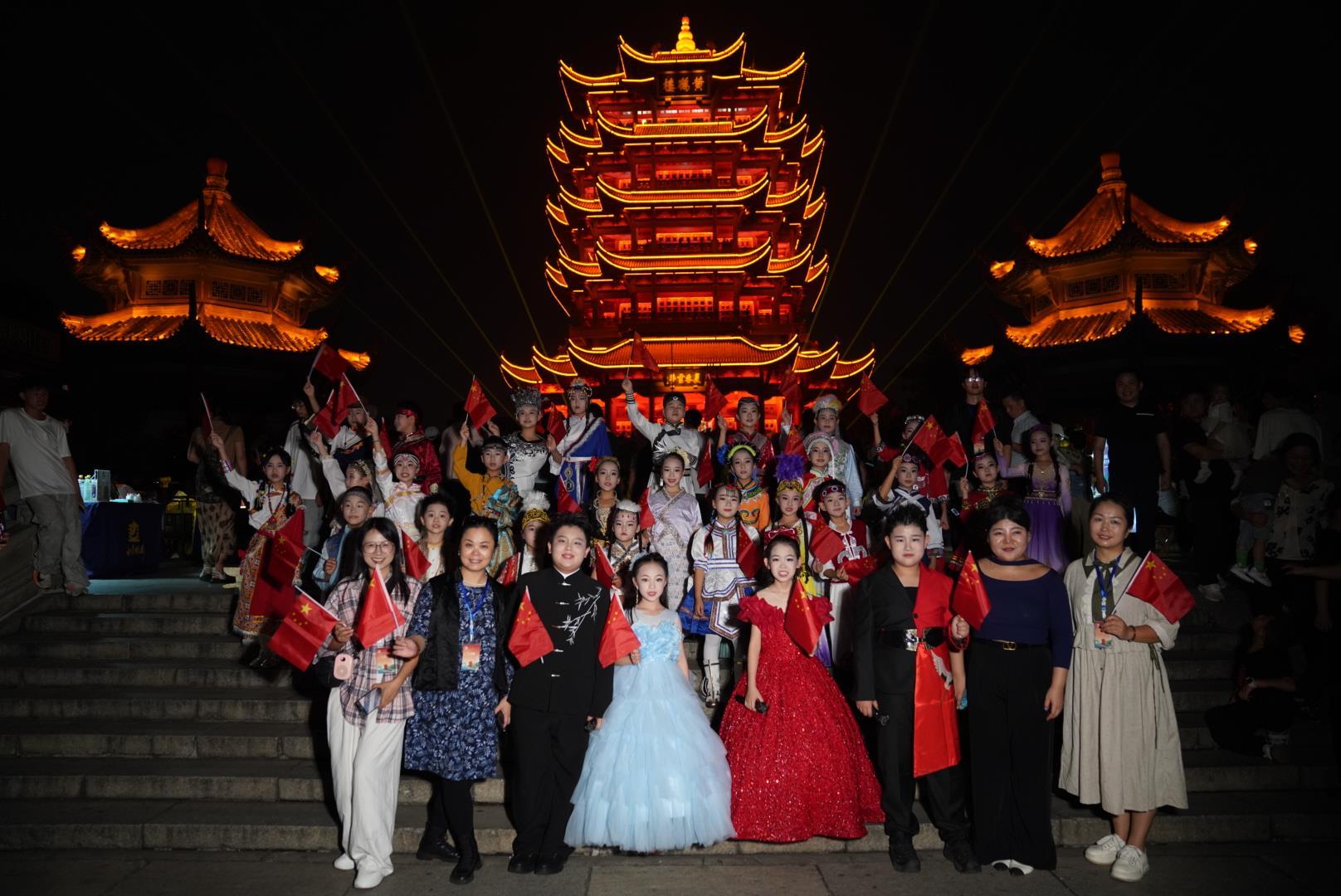 10月1日晚,黄鹤楼下人潮涌动、气氛热烈,众多市民与游客早早聚集于此,期待一场视听盛宴。武汉天使合唱团携经典红歌《我和我的祖国》深情开唱,以天籁之音点亮江城之夜,为祖国献上最深情的礼赞。“我和我的祖国,一刻也不能分割……”动人歌声回荡在黄鹤楼的飞檐翘角之间,萦绕于每位观众的心头。许多人情不自禁跟唱,手中挥舞的国旗汇成一片涌动的红色海洋。掌声、歌声、欢呼声此起彼伏,现场化作爱国情与感动交织的海洋。