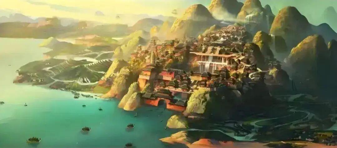 影片中,哪吒的家乡陈塘关作为故事的主要发生地,见证了哪吒的成长变化。充满奇幻色彩的陈塘关风光,设计时借鉴了广西桂林的山水景观。