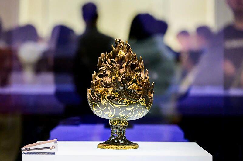 这朵宝莲的原型是河北博物院珍藏的西汉错金铜博山炉,出土于西汉中山靖王刘胜墓,其炉盖层峦叠嶂,形似“博山仙境”。其实,博山炉是古代的一只“香薰机”。