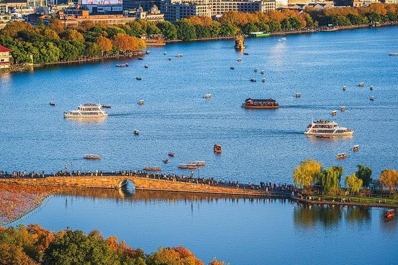 杭州是一座自带浪漫基因的城市,流传千载的《白蛇传》爱情传说,为断桥增添了浪漫色彩。如今,伫立断桥,背对宝石山可遥望雷峰塔,远山近水尽收眼底。