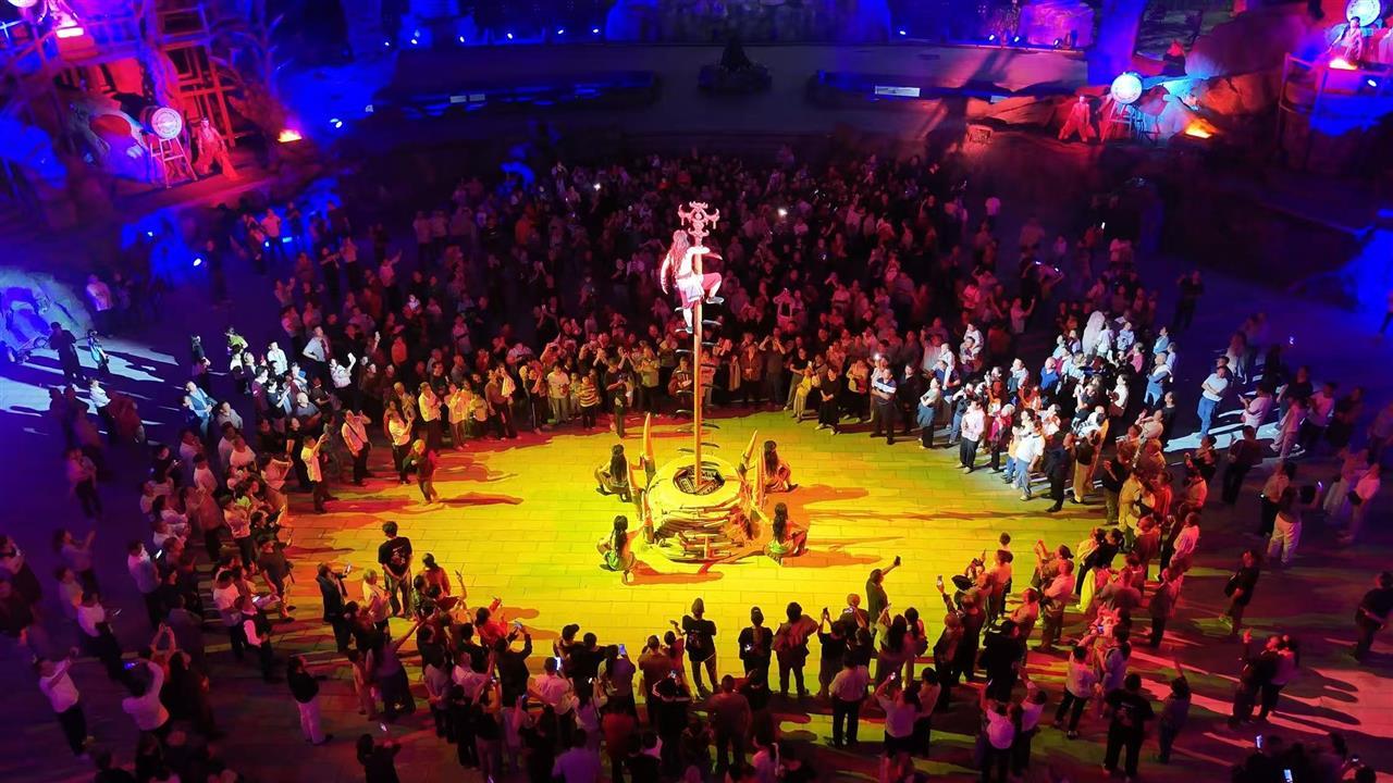 咸宁通山药姑山古瑶村景区大型沉浸式民族史诗《瑶望千年·云歌》吸引众多游客观看