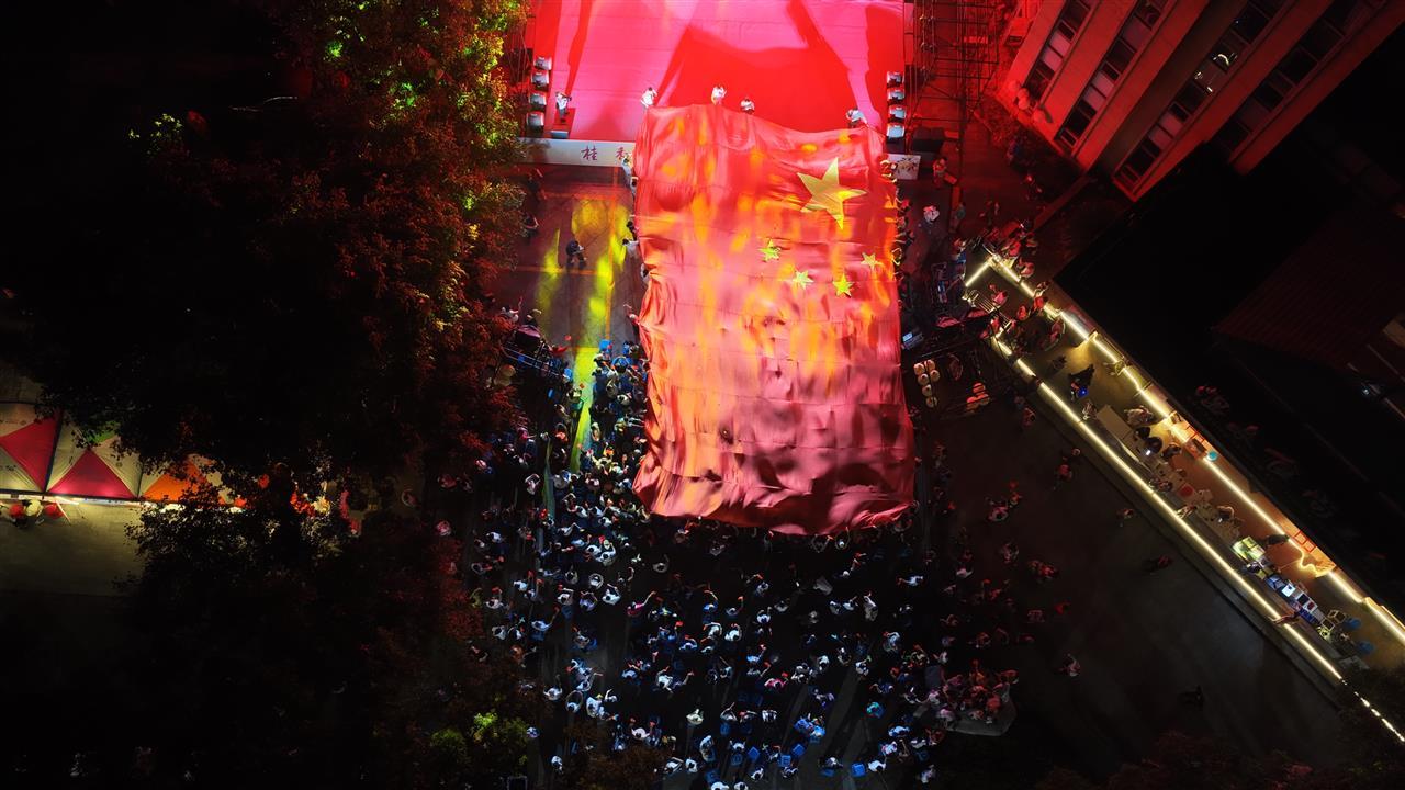 咸宁月亮湾街区万人同唱《我和我的祖国》
