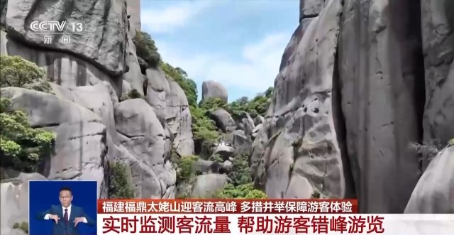 总台记者彭雨佳:根据景区最新的数据统计显示,昨天,太姥山的入园人数达到了1.16万人次。从今天开始,景区将会迎来客流的高峰期,截至中午一点,景区的入园人数已经超过了1.1万人次,是同期时段的3.5倍左右。