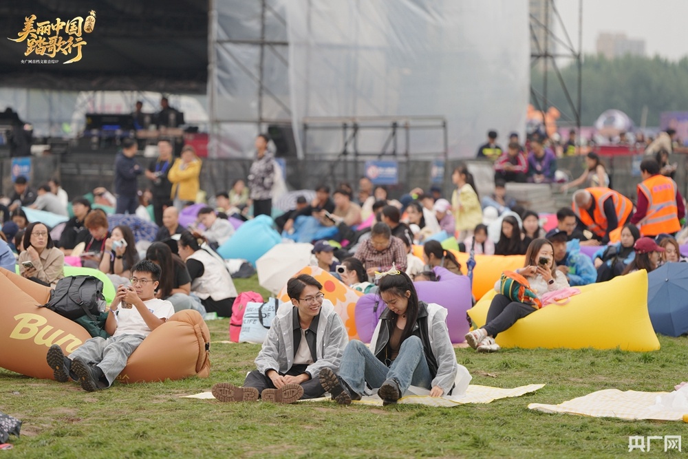 国庆假期第二天,和亲朋好友共赴一场音乐节成为年轻人喜爱的文娱活动之一。他们拿出野餐垫、摆好充气沙发,或闲聊、或自拍,充分享受惬意的休闲时光。