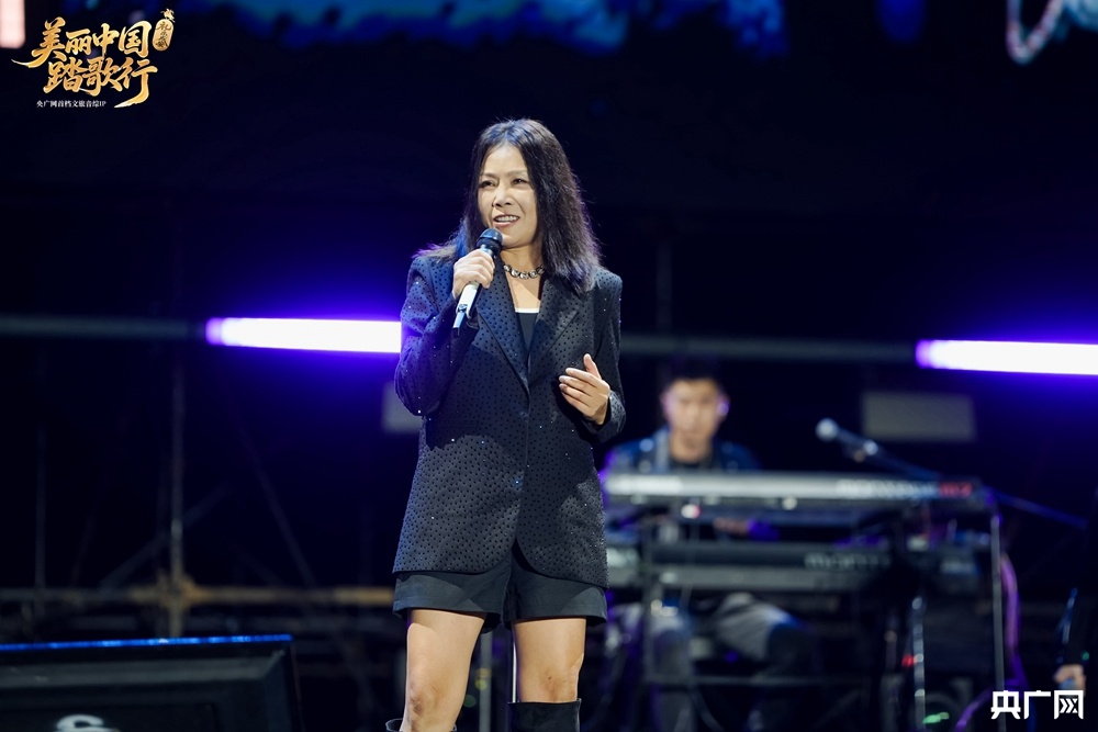 田震登台后现场秒变大型“卡拉ok”,“风雨彩虹,铿锵玫瑰”“我要你靠近我抱着我,好好爱我”等经典旋律再现。