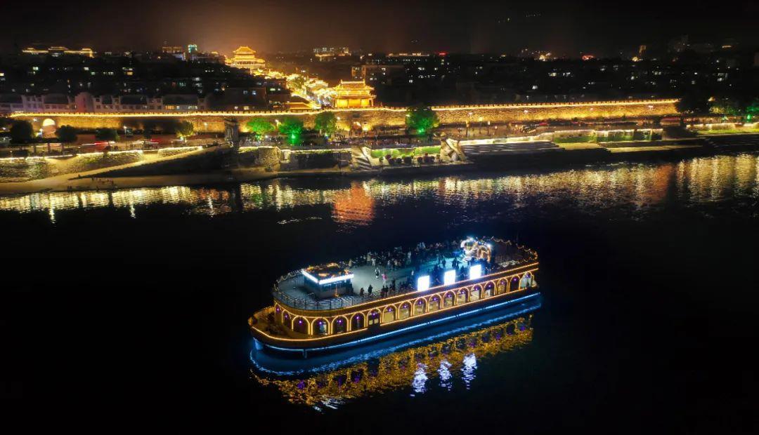 市井烟火气是襄阳夜游的另一张名片。襄阳古城北街人声鼎沸,游客循着香气逛吃襄阳牛肉面、红糖饼等特色美食,感受最地道的襄阳生活。北街姊妹街管家巷同样热闹,华灯初上时,青砖黛瓦的街区内,NPC主导的互动演艺与文创集市相映成趣,成为游客夜游打卡的 新地标。米公祠晚间文艺汇演免费开放,汉江游轮推出“浪漫汉江+节目演艺”航线,游客乘船夜游汉江,尽览两岸璀璨夜景,聆听“襄阳江湖故事”,感受“侠义之城”的浪漫。
