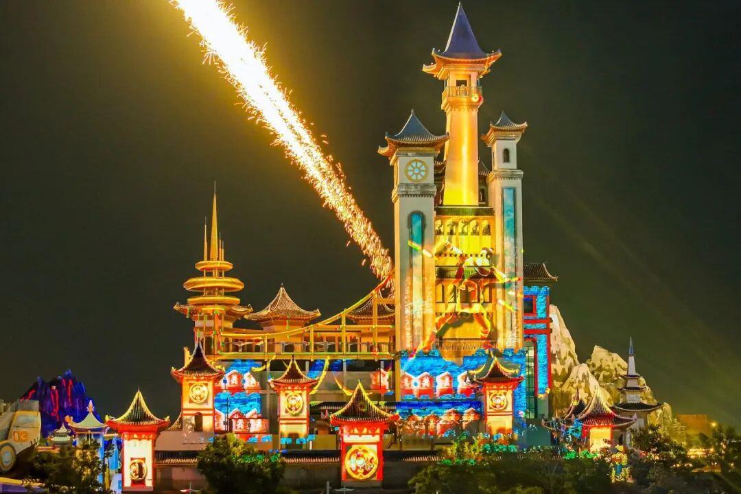 科技与文化碰撞的光影盛宴,成为“侠义襄阳”的夜游名片。襄阳华侨城奇幻度假区的“奇梦城堡光影秀”,不仅有米芾墨迹等文化元素,更以 7D 全息投影再现“郭靖弯弓守襄阳”的经典场景,搭配10万发加码烟花与千架无人机表演,现代科技与千年文化完美融合,引得游客阵阵惊叹。“当看到郭靖的光影画面时,我鸡皮疙瘩都起来了,这就是襄阳的侠义魂啊!”来自河南的游客张先生激动地说。