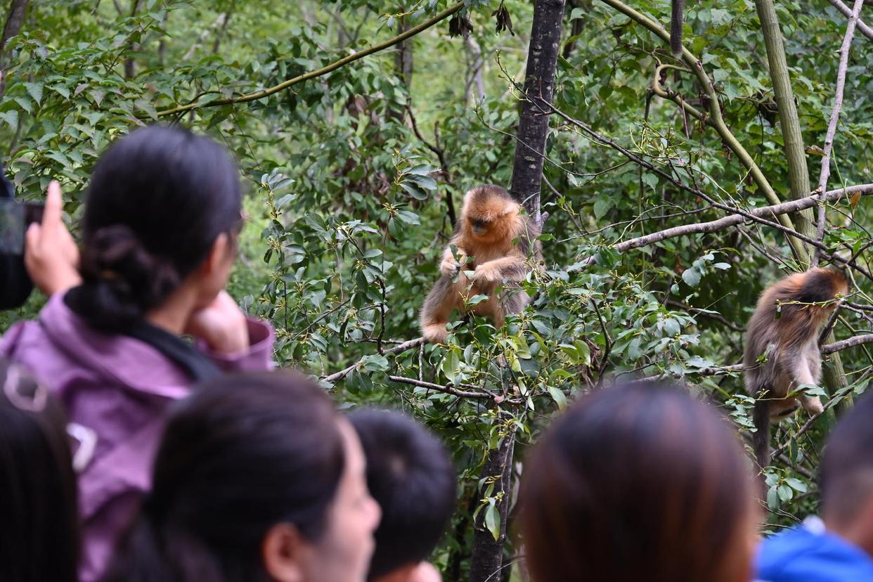 ▲游客观赏金丝猴 供图:九寨沟县委宣传部