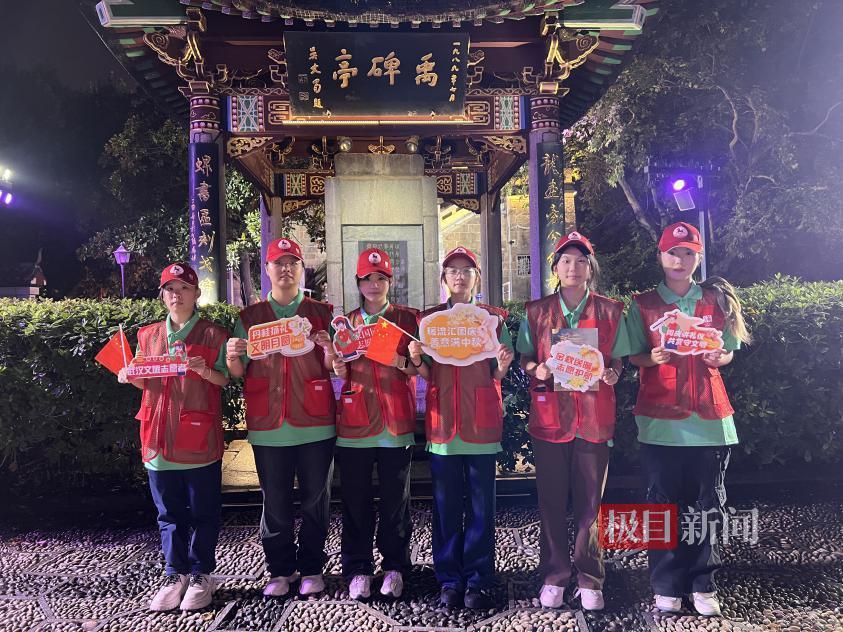 “为了今天的服务,我们提前做了不少‘功课’呢!” 志愿者潘叶介绍,早在活动前,大家就主动熟悉了所有演出曲目的背景资料、中秋传统习俗,还特意梳理了武汉热门文旅资源。当天,她们更是提前两个多小时就抵达现场,沿着晴川阁的台阶、廊道反复踏勘,把演出场地布局、观众出入流线、应急通道位置都摸得一清二楚。
