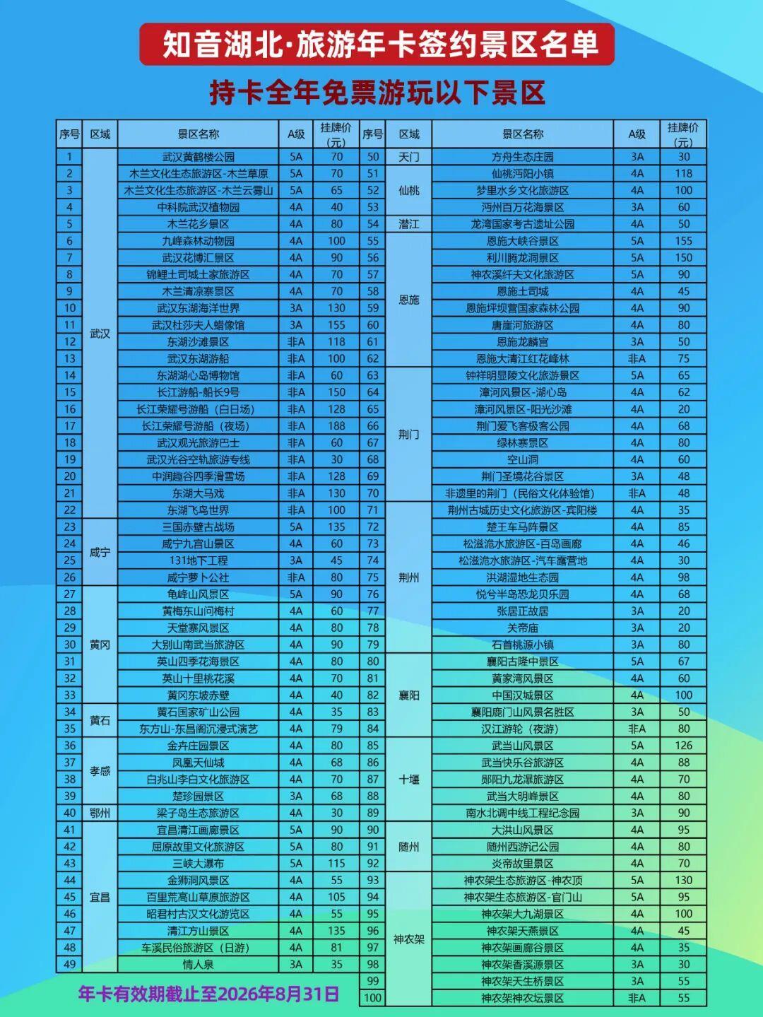 【答】知音湖北·旅游年卡有效期截至2026年8月31日。