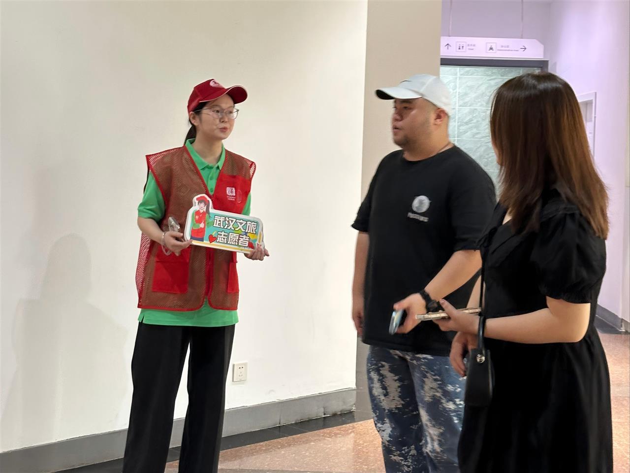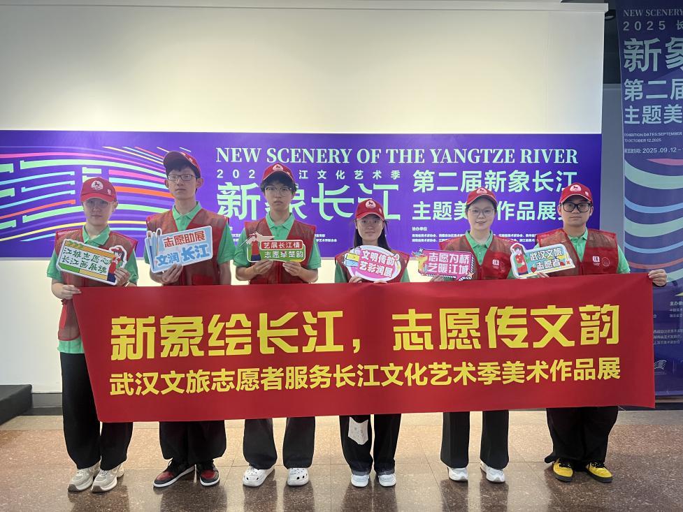 10月12日,国庆假期后的首个休息日,也是“新象长江”主题美术作品展在湖北省美术院展出的最后一天,不少市民游客抓住最后机会前去观展。一群身着红马甲的武汉文旅志愿者穿梭其间,用专业与热情为这场艺术盛宴注入暖意,让长江文化的磅礴与城市温度悄然交融。