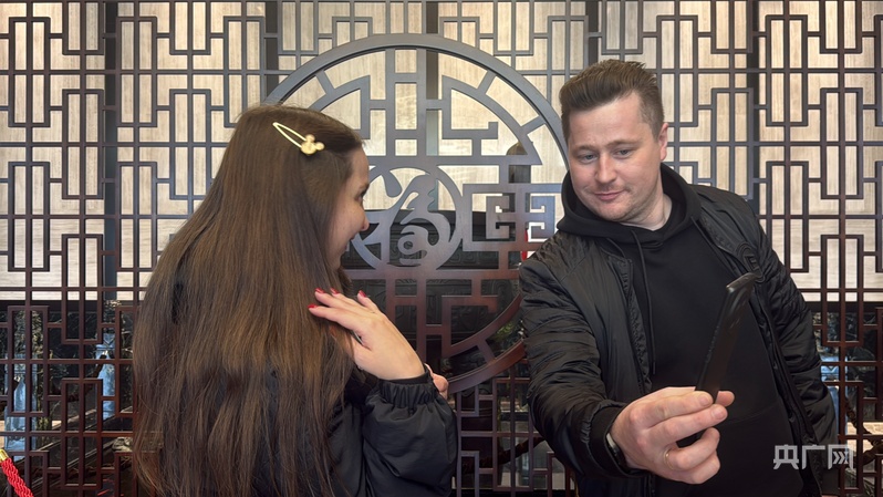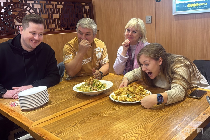 游客奥利亚和朋友此行更注重美食体验。他们中午品尝了饺子、锅包肉和凉菜,还预订了晚餐的烤鸭,下午还聊天畅饮一番。奥利亚认为中国菜很好吃,乐于向中国人学习筷子的使用,现在已十分熟练。“俄罗斯也有中餐,但没有在中国吃得正宗,以后会经常来。”她说,计划回家后尝试复刻中国味道的饺子,做给亲人品尝。