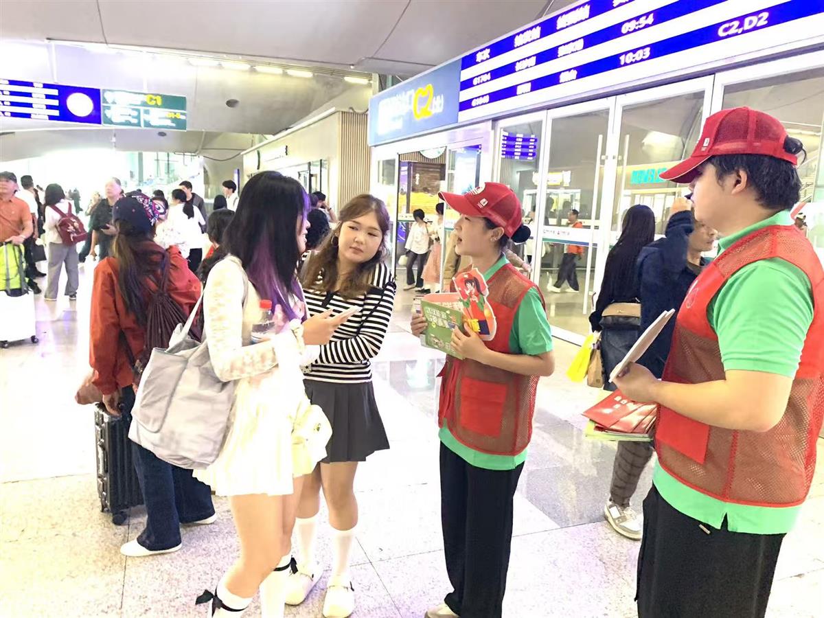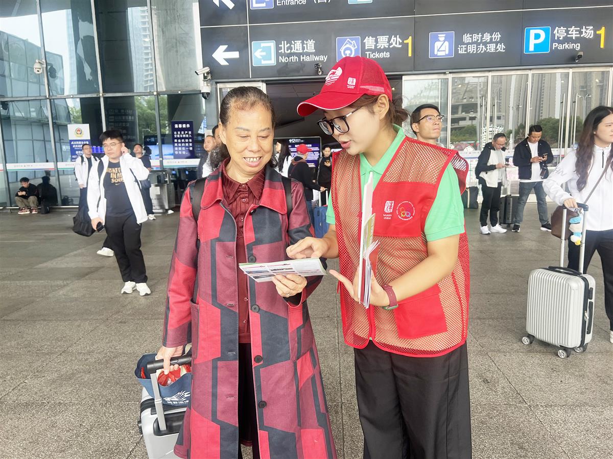 为帮助八方来客高效打卡武汉,充分展现武汉这座英雄城市的热情与温度,10月17日上午,武汉文旅志愿者们早早来到武汉火车站开展志愿服务,红马甲、绿T恤在人潮中格外醒目。此次服务以“秋日武汉行 志愿伴你心”为主题,志愿者们围绕“推广武汉、传播爱心”的核心目标,为过往游客提供了多维度、贴心化的服务。
