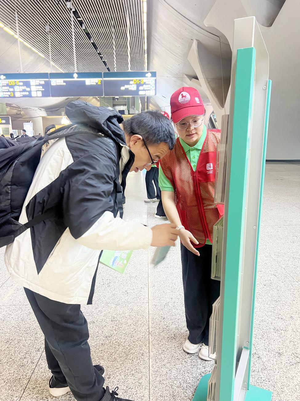 考虑到不同游客的出行需求,志愿者们还为游客提供“点对点”交通规划建议,用细致入微的服务解决了游客的出行难题,让游客在武汉的出行更加便捷、安心。面对老年游客,志愿者们会放慢语速,用手指着地图上的公交、地铁线路,反复讲解。遇到对路线不熟悉的游客,志愿者们更是直接陪同前往乘车点,直到看着游客顺利上车才返回咨询点。一位从外地来武汉探亲的老人感动地说:“本来还担心找不到地铁站,多亏了这些年轻人,比自家孩子还细心!”